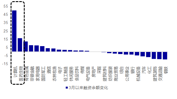 杠杆资金(融资)对医药生物的偏好也是显著。两融资金持续追逐高弹性板块,其中计算机、医药都是重点加仓方向。