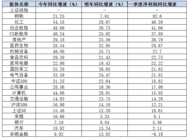 (备注:其中,今年同比增速、明年同比增速均利用朝阳永续个股净利润一致预期数据计算,一季度净利润同比增速根据一季度个股净利润数据计算)