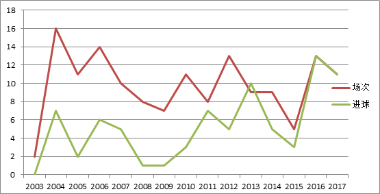 接下来,再看一下C罗在葡萄牙国家队的表现。哇哦!不太稳定。