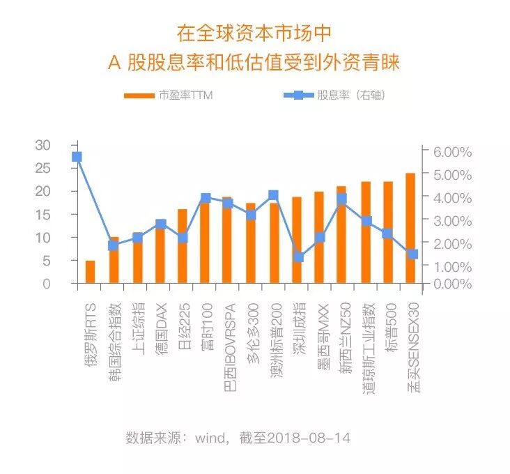 外资持续布局A股,除却追踪MSCI“被动增量”资金外,主动“扫货”力量不容小嘘。这主要是因为,从全球视角来看,A股基本面仍较稳健,相较其他新兴经济体抵御风险能力较强,在改革和政策刺激预期下,市场受到扰动较小。同时经历前期调整后,A股估值和业绩匹配度不错,股息率在全球主要股指中极具竞争力,增配A股“有理有据”。