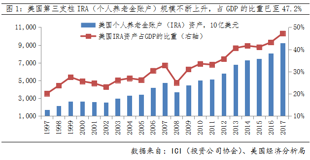 自1994年世界银行首次提出养老金三支柱模式以来,诸多国家均以此为目标调整和改革本国的养老金体系。一般而言,第一支柱是由政府主导并负责管理的基本养老保险;第二支柱是由政府倡导、企业自主发展的补充养老保险,如我国的企业年金;第三支柱是由个人或团体建立的私人退休账户,一般有税收优惠激励,如美国的IRA。