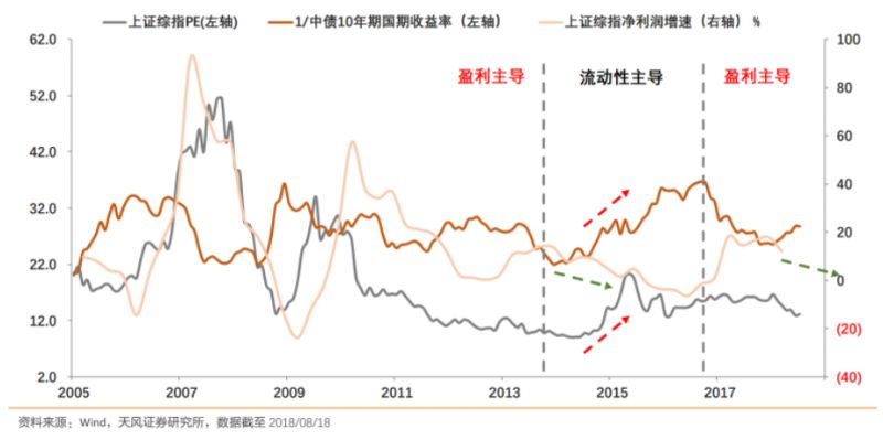 2013年以前,估值的走势基本与盈利增速一致,估值略提前。此时,盈利的波动幅度较大,是资产价格的决定性因素。