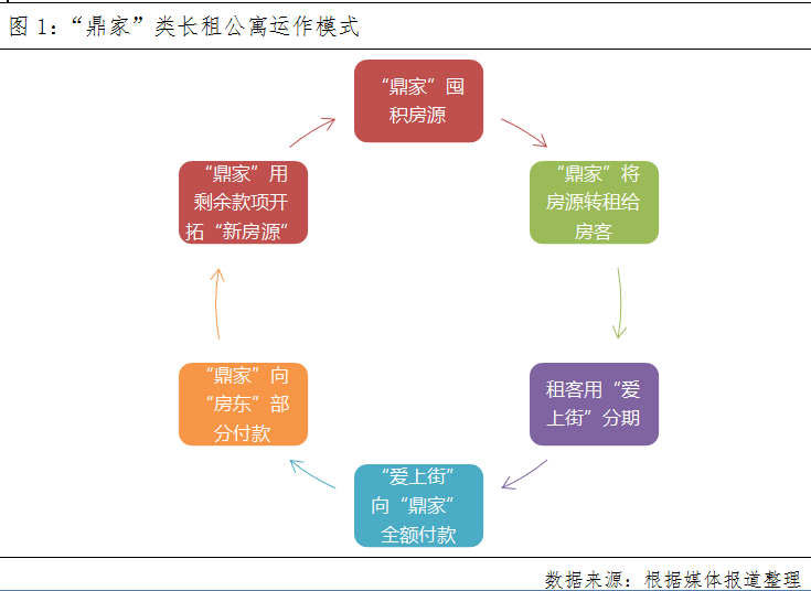 不少投资者都用过信用卡分期。有时我们需要买入大件商品,而临时又没有足够多的资金,这时信用卡分期就能帮你解决问题。信用卡分期相当于银行一次性借给你一笔钱,你拿这笔钱去买汽车、手表、手机等商品,并在随后的时间内分期偿还这笔贷款。实际上,蚂蚁花呗、京东白条都有类似的功能。在鼎家的例子中,租客与“爱上街”签订的合同,就类似于信用卡分期,只不过买入的不是汽车等商品,而是未来一年的住房服务。