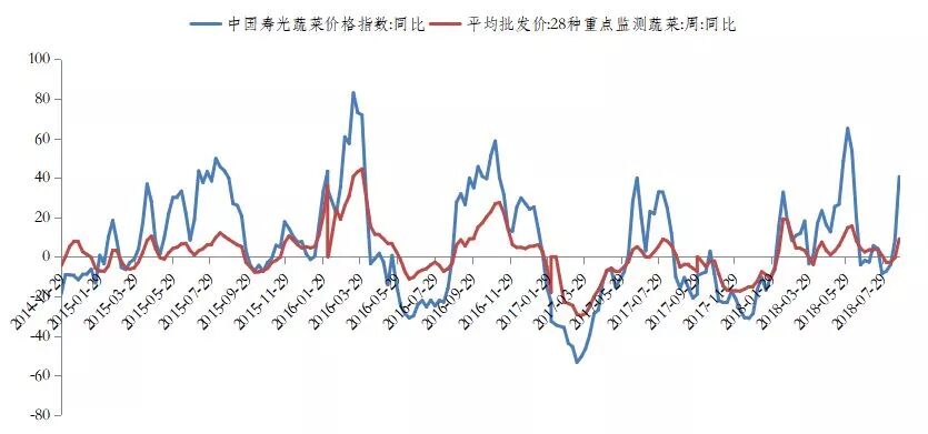 图1:寿光蔬菜价格指数同比与全国蔬菜平均价格同比