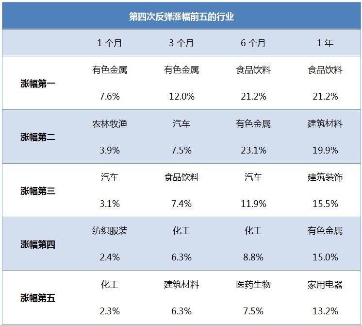 在四万亿救市政策和十大产业振兴计划的共振下,A股自6124点高位回落后终于迎来这一轮反弹。从行业上来看,建筑材料、电气设备和有色金属的业绩表现具有较好的持续性,无论在反弹前期还是后期,涨幅均位列行业前五。