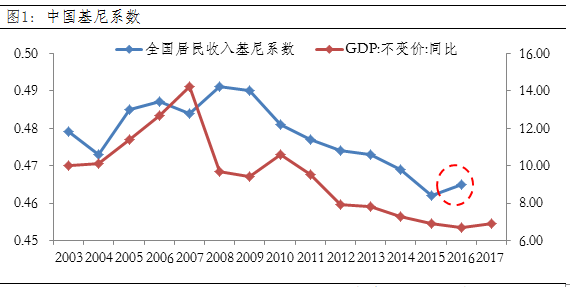 中国经济从2012年进入“新常态”,经济从“高速期”切换到“中速期”,与此同时,贫富差距也在扩大。根据wind数据,中国的基尼系数在连续多年下降后,2016年“抬头向上”。当收入向两极分化,消费也开始分化,从而出现一些人的“消费升级”却成为其他人的“消费降级”。以房租上涨为例,对于租客而言是“挤出效应”和“消费降级”;而对于出租者却是“财富效应”和“消费升级”。