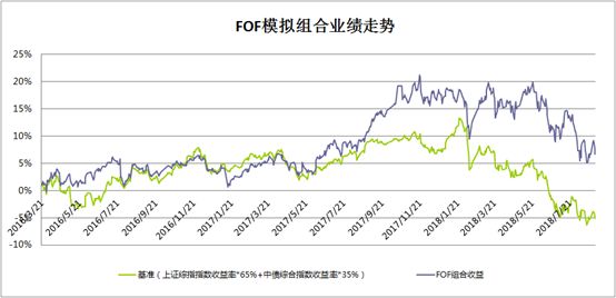 上周我们的FOF模拟组合期内收益率为-0.1%,与同期基准(上证综指指数收益率*65%+中债综合指数收益率*35%)基本持平。