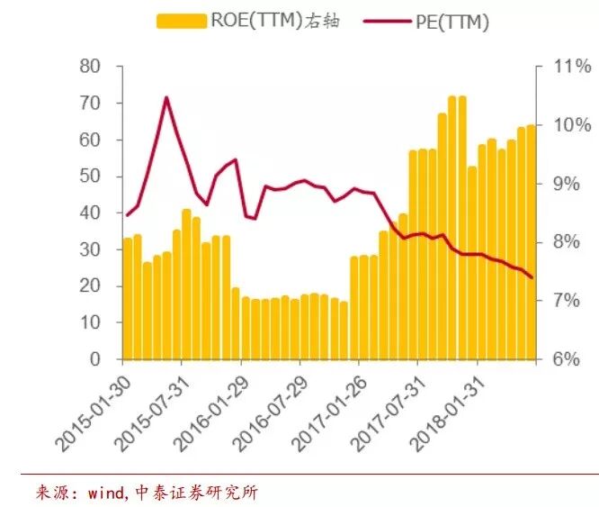 而相比之下,衡量指数成长性的指标,ROE(TTM)却处于历史相对高位。