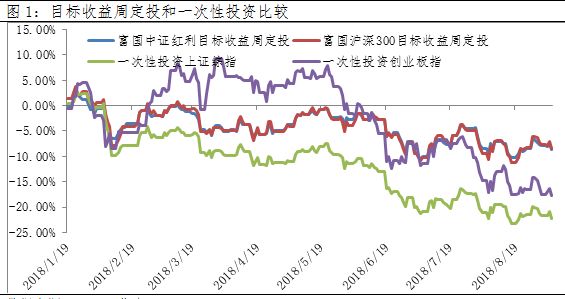 数据显示,自2018年1月中下旬高点开始目标收益周定投富国中证红利、富国沪深300的收益为-8.74%和-8.54%,相较于一次性投资上证综指、创业板指的收益-22.17%、-17.71%,偏股型基金平均收益的-15%,其也能表现的更“强”。