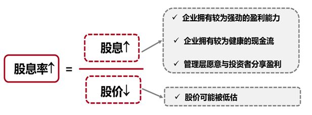 从定义上来看,股息率就是股息与股票价格之间的比率。那么想要实现高股息率,就意味着该上市公司需要满足股息派发金额较大、股价较低两者中的一者,或两者皆具备。