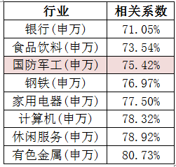 3.弱相关性。在特定的市场环境中,军工和大盘的相关性相对比较低。所以很多客官在做配置的时候,会考虑到这一个特点。