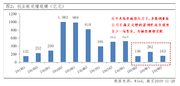 ➤另一方面,再融资松绑为创业板注入“强心剂”,11月8日证监会针对再融资规则进行修订,取消了“连续盈利2年”“资产负债率高于45%”两项要求,此前受到商誉减值等问题而大面积亏损的创业板最为受益,预计782家创业板公司中,有588家有望在此次再融资新规正式实施后受益,占创业板公司总数约76%。