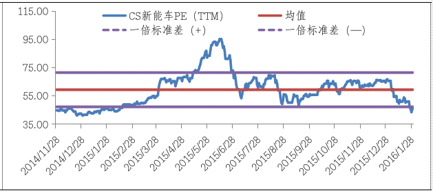 经过2017-2019年退坡政策和行业格局变化的不断洗礼,CS新能车估值处在历史的底部区域,为短期行情打下基础。2014年年底以来CS新能车PE(TTM)估值区间在40.97倍-95.15倍,当前CS新能车PE(TTM)45.69倍,小于均值的59.33倍及负的一倍标准差的47.19倍。