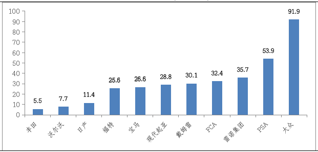 图1:欧洲车企面临的碳排放超标罚款(亿欧元)
