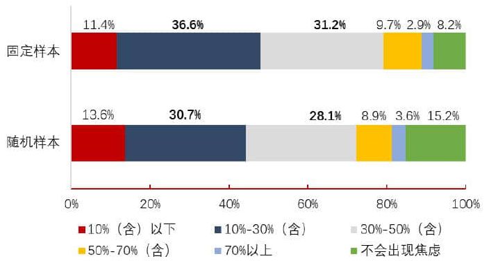 2、会出现焦虑的亏损区间分布:产生焦虑情绪的亏损比例集中在10%-50%。听起来貌似合理,但鉴于10%-50%的亏损在我大A股可能随随便便就发生的情况,触发“焦虑线”,实在太容易了。