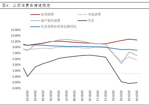 必须消费品的逆周期特性显著,在整体消费下行的背景下,同比增速依然能够“稳中有升”,主要受益于减税、扶贫、稳就业、扩内需等政策。而在经济偏弱叠加产业结构面临长期调整的背景下,社会政策或进一步托底、刺激消费。