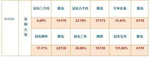 按照过去三个月、过去六个月、今年以来、过去两年、过去三年、过去五年此6个时间指标来看,富国天惠都取得了正收益且同类排名都在行业前25名。并且随着时间的拉长,排名也在稳步攀升。