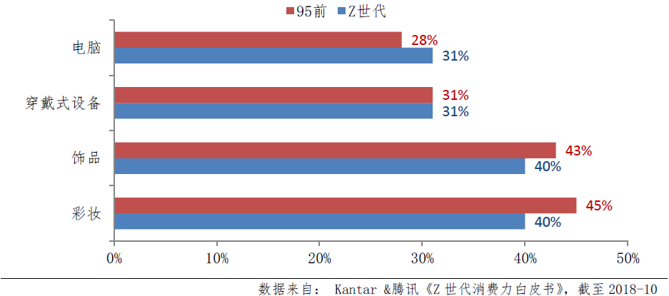 图2.Z世代各品类“品牌”成熟度,几乎和95前的千禧一代持平