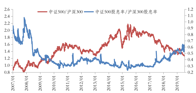 ❶ 第一,核心资产“抱团”下,沪深300或“涨过头”,相反,中证500的配置优势逐渐提升。一方面,中证500和沪深300的比值为1.28,已低于2013年启动前的最低点;另一方面,沪深300的股息优势逐渐下降,中证500股息率/沪深300股息率已从0.2提升至0.6。