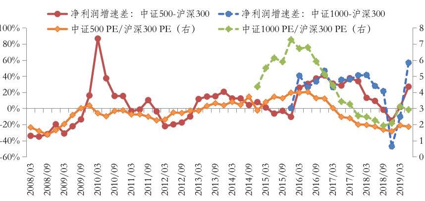 ❖ 一方面,根据wind一致预期,2019年中证500相对沪深300的净利润增速差提升至27%,PE比值仅增长18%。