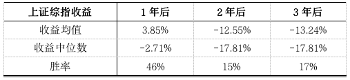 历史上一共有26个交易日符合上述条件,在这26个交易日里,持有1年和3年的收益数据都极其漂亮,胜率达到100%,只有持有2年的收益数据不太好看。