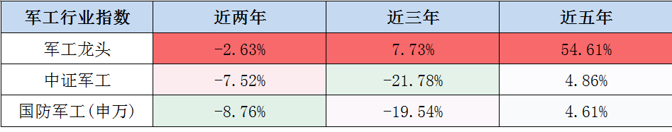 当然,军工龙头业绩好这件事,也不是最近一天两天才有的。级掌柜统计发现,在近两年、近三年、甚至近五年的时间里,军工龙头指数相对市场上其他军工指数,均有一定的超额收益。