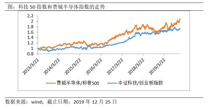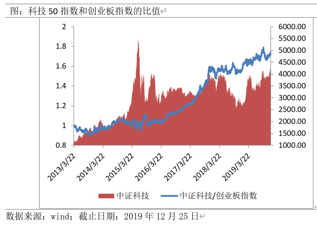 大家会发现,科技50的指数和创业板指的比值,一直往上走的,说明核心的科技公司长期表现还是非常不错的。