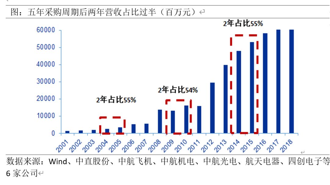 军工龙头板块的基本面正在发生一些良好的变化。军工板块的业绩有一个五年左右的周期。每一轮周期的后两年,都是军工行业采购的恢复期,量增长得很快。所以2020年,大概率受到明显的改善。