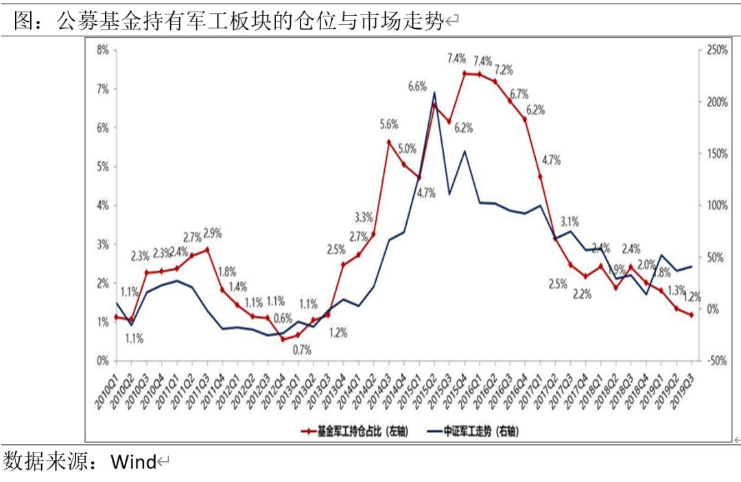 第一,买的人足够少,整个市场的机构配置资金处于历史低位,而且整个军工板块的估值在历史新低附近。所以整个板块的估值也非常低。