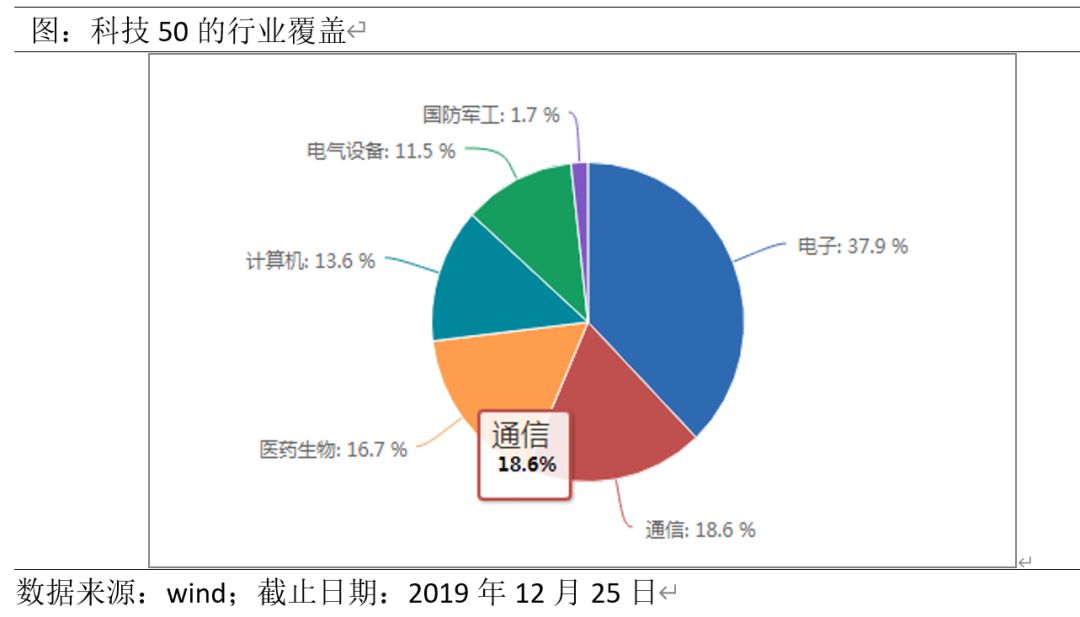 那么科技50,这个行业有哪些构成?电子、通信、计算机等等行业构成,都是中国的科技转型方向,值得大家来关注。