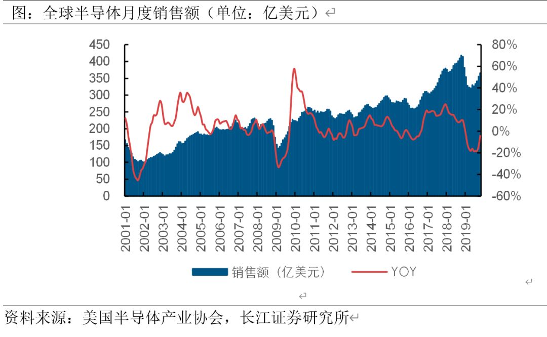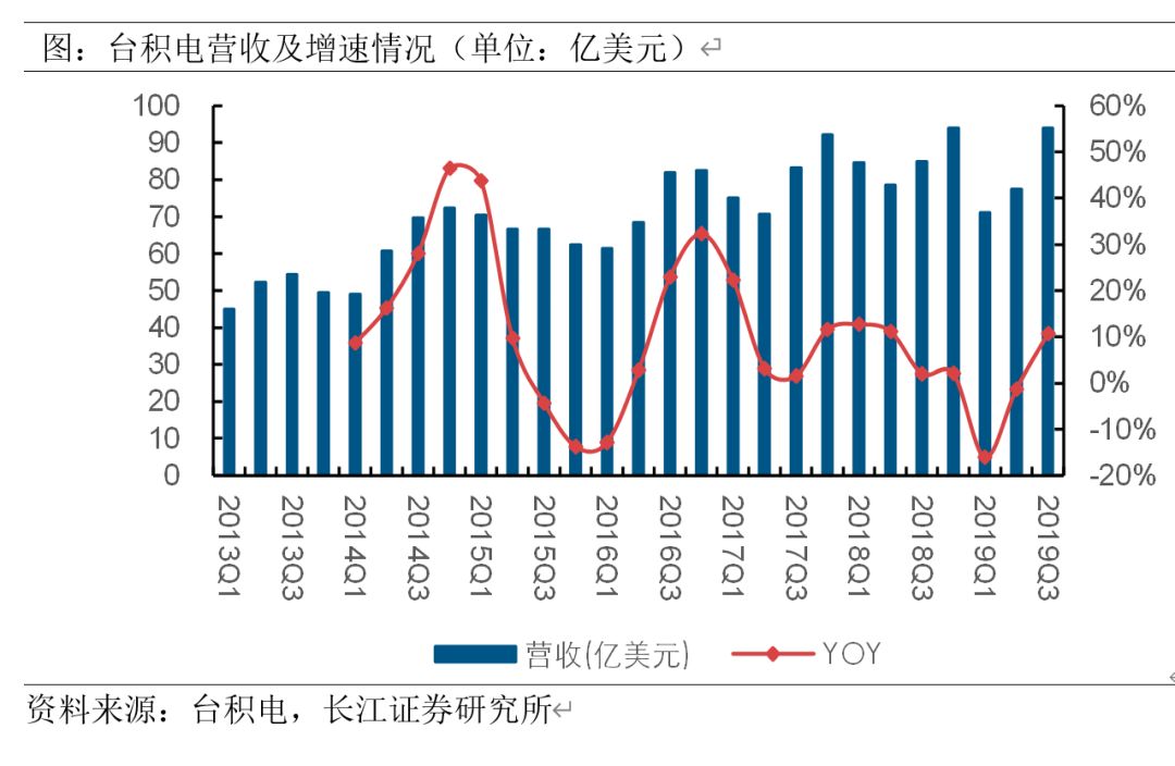 我们再看整个半导体产业链。随着5G产业链的逐渐落地,相关需求也开始有所改善。比如:说标杆的前端企业的台积电,同比增速高达10.72%,投资创历史新高。加大投资往往是行业需求释放的提前布局。这是给我们的一个重要信号。