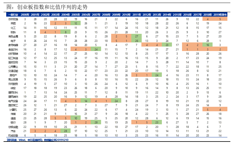 备注:连续三年涨幅前五的仅有01-03年的汽车和04-06年的白酒;电子和计算机涨幅第一和第四,其中电子在2018年表现垫底。