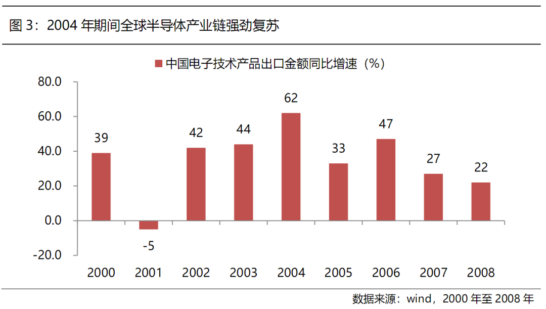 SARS疫情后的反弹行情自2003年11月展开,主要受传媒、电子、通信等科技股带动。从原因上看,2004年正值个人电脑换代及智能手机普及,引发半导体产业链大幅增长。