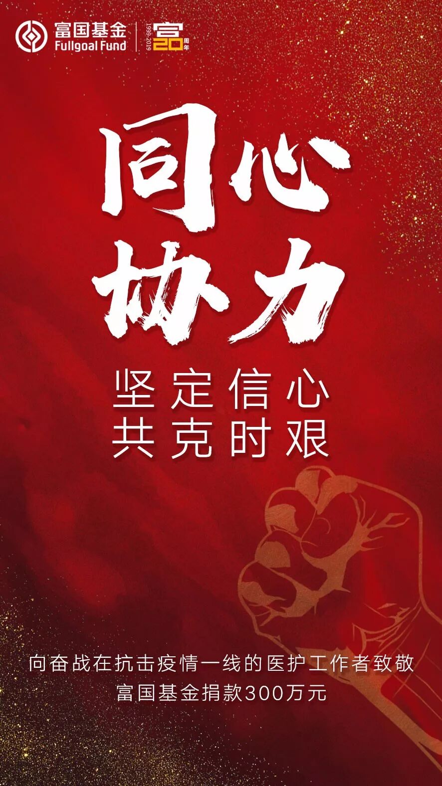 近日,新型冠状病毒感染的肺炎疫情牵动举国上下的心,富国基金管理有限公司(以下简称“富国基金”)密切关注新型冠状病毒感染的肺炎疫情联防联控工作,奋战在抗击疫情一线的医护人员尤其牵动着我们的心。