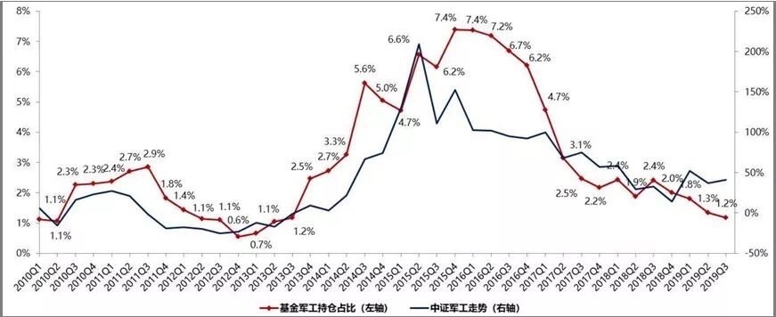 4.机构配置力度在历史地位,存在巨大的预期差。根据基金三季报来看,军工板块的配置比例在历史低位附近,随着军工景气度的提升,无论A股市场的存量资金博弈,还是新增资金博弈,任何资金的流入,都会对军工板块形成提振作用。