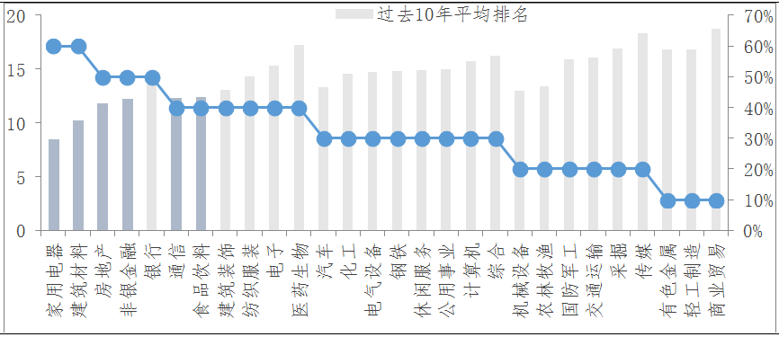 图3:28个申万一级行业过去10年的年底行情胜率情况(11-12月)
