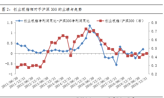 当然,补坑的过程也加速了市场风格切换的推进,强势的创业板和科技股短期亦然面临较好的契机。首先,整体看好创业板盈利增速的回升。第一,从整体趋势看,受益于2018年大规模资产减值导致的低基数效应,2019年创业板的整体板块盈利增速迎来大幅反弹。第二,创业板相对沪深300的业绩差已从2019Q2起趋势向上;基金季报显示,公募基金已连续2个季度加仓成长、减仓消费,成长板块仍有加仓空间。