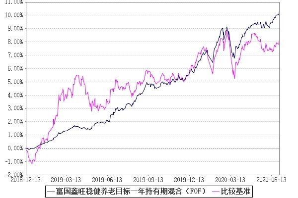 看这回报率和平缓的走势线~在近一年权益市场大幅波动、债券市场“郁郁不得志”的时候,它的表现算是比较治愈的。 数据来源:基金定期报告,Wind,数据截至2020.6.30。富国鑫旺稳健养老一年持有期FOF成立于2018年12月13日,基金净值增长率(及其业绩比较基准收益率)2019年度为6.28%(7.80%),2020年上半年为3.77%(1.20%)。基金管理人的历史业绩不构成未来业绩表现的保证。