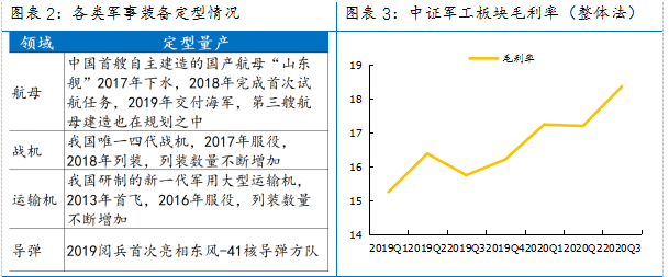 1)武器装备建设纷纷定型,进入产量提升阶段,将为行业带来实质业绩贡献;