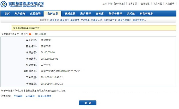 A、若您通过银行卡支付(工行直联、民生银行、招商银行),则将看到申购申请成功提交的画面。请确保您银行卡余额充足。