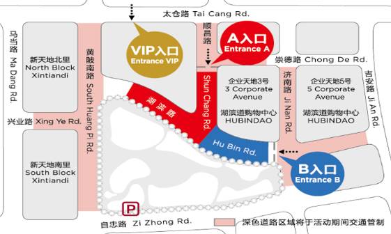 ① 乘坐地铁1号线黄陂南路站1号出口; 10号线、13号线新天地站1号出口