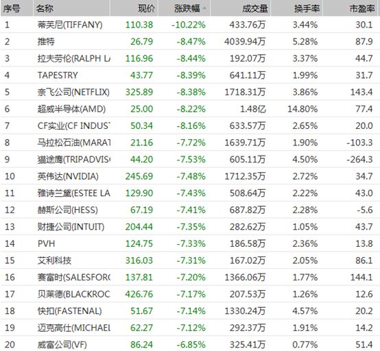 恭喜女粉们最爱的Tiffany当选跌幅破10%的领跌之王。