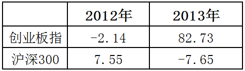 表:2012年、2013年创业板指与沪深300涨幅对比