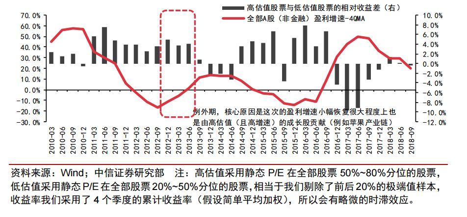 所以,在此轮盈利增速周期见底之前(预计 2019Q2 见底,2019Q3 回升),成长风格将会优于价值风格,估值本身并不是核心障碍。