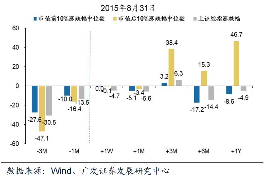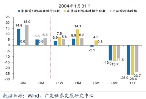回顾这五次声明发布前后的1-3个月,除2008年小盘股在声明后下跌幅度更高之外,其余四次均发生了风格切换,小盘股从前期三个月的跑输到后期三个月取得显著高于大盘股的超额收益。
