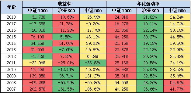 表:三大指数历年收益率、波动率对比