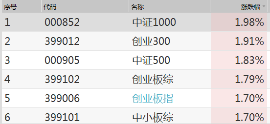图:今日主要宽基指数涨幅TOP6