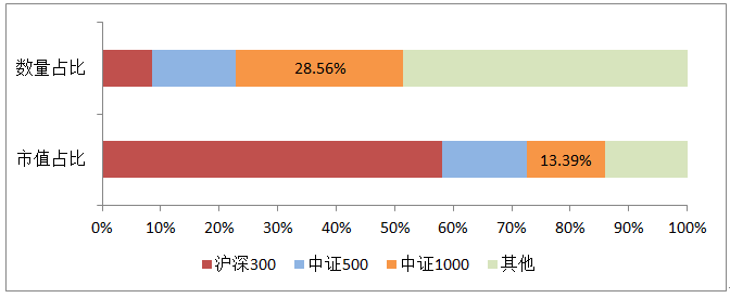 图:三大指数成分股数量、市值占比对比