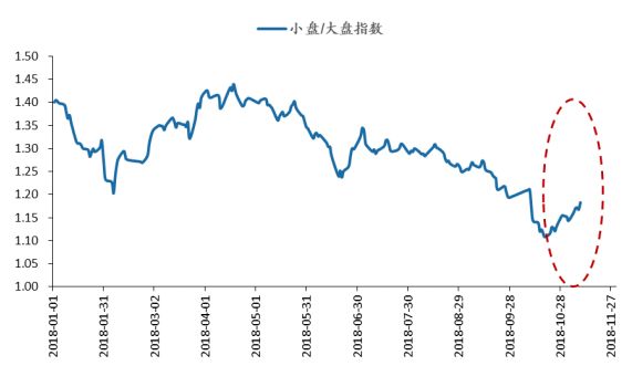 图:10月下旬以来小盘股的表现优于大盘