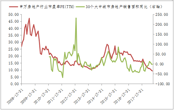 图3:房地产板块估值随房地产销售下滑不断创出新低